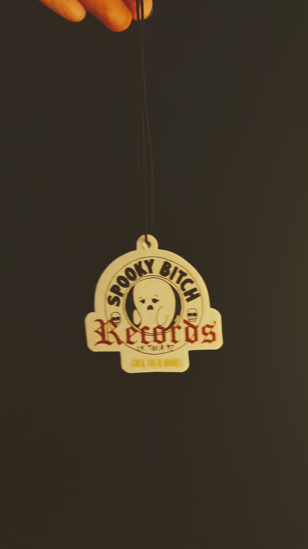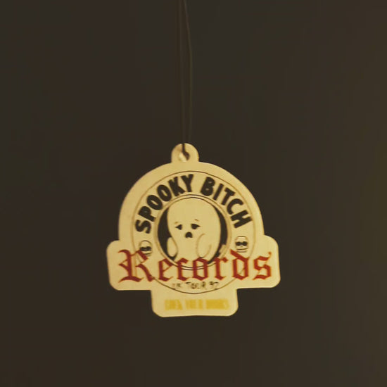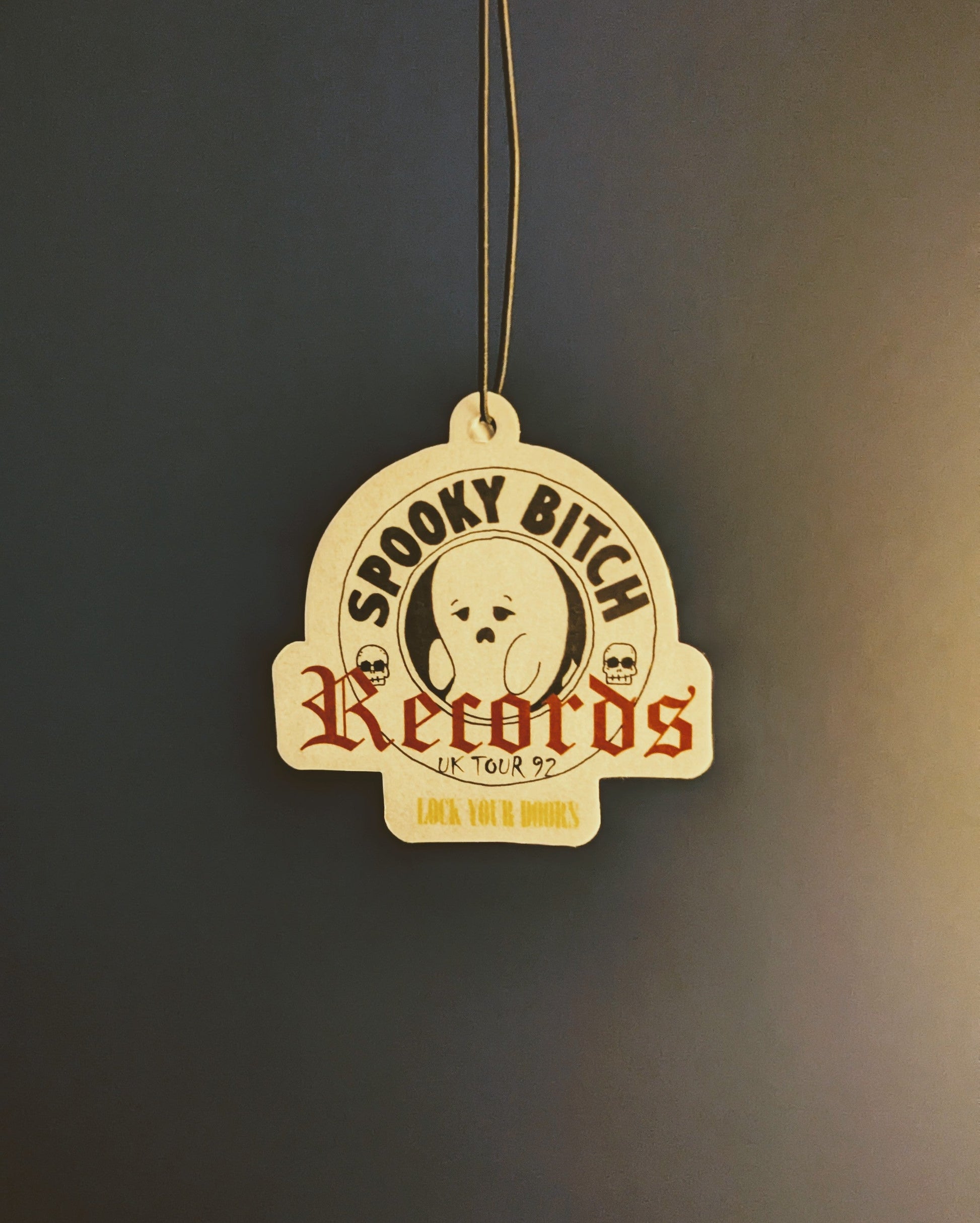 Car air freshener with my best selling 'Spooky Bitch Records' hand-drawn design.